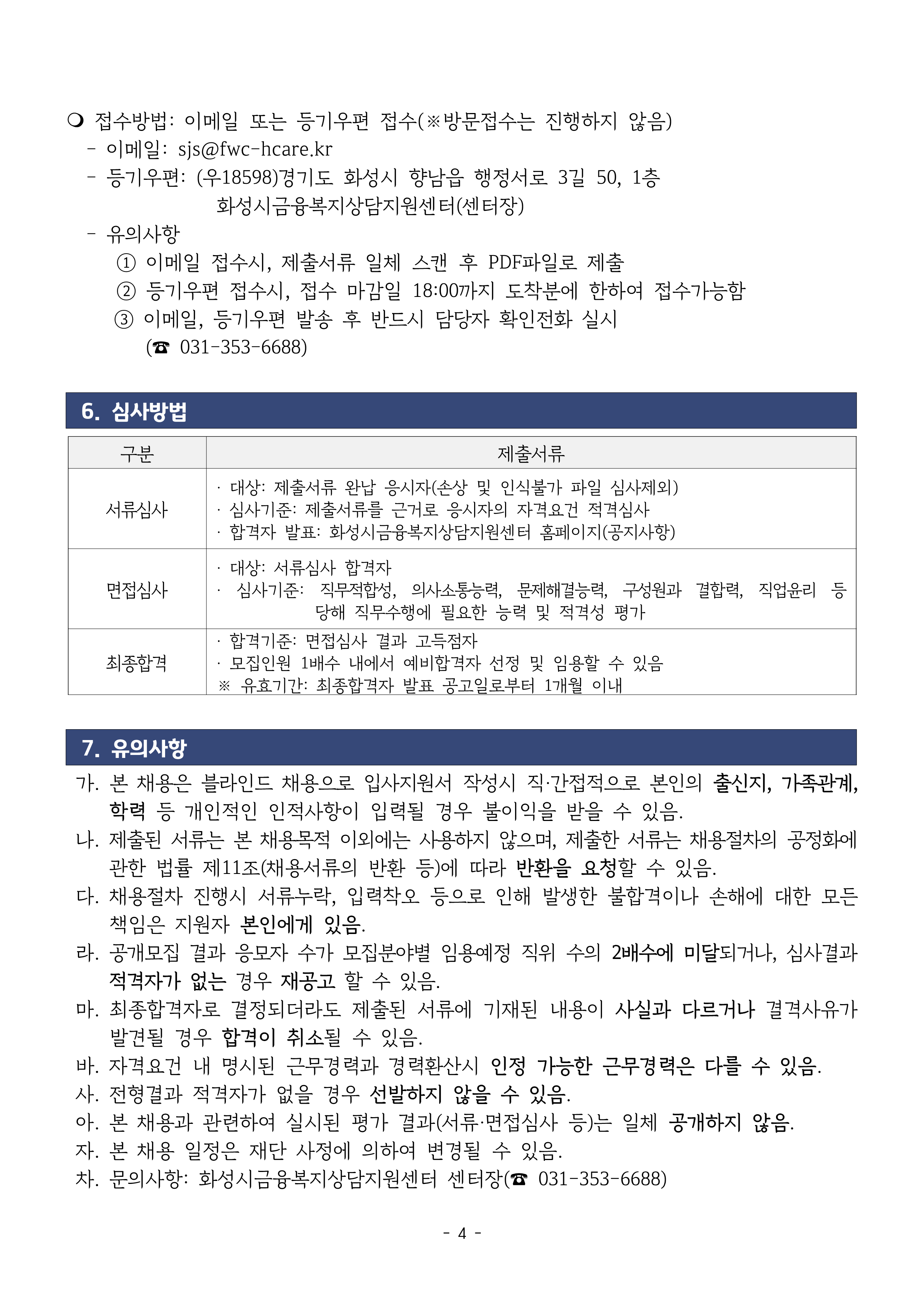 2025년 1차 화성시금융복지상담지원센터 직원채용 공고