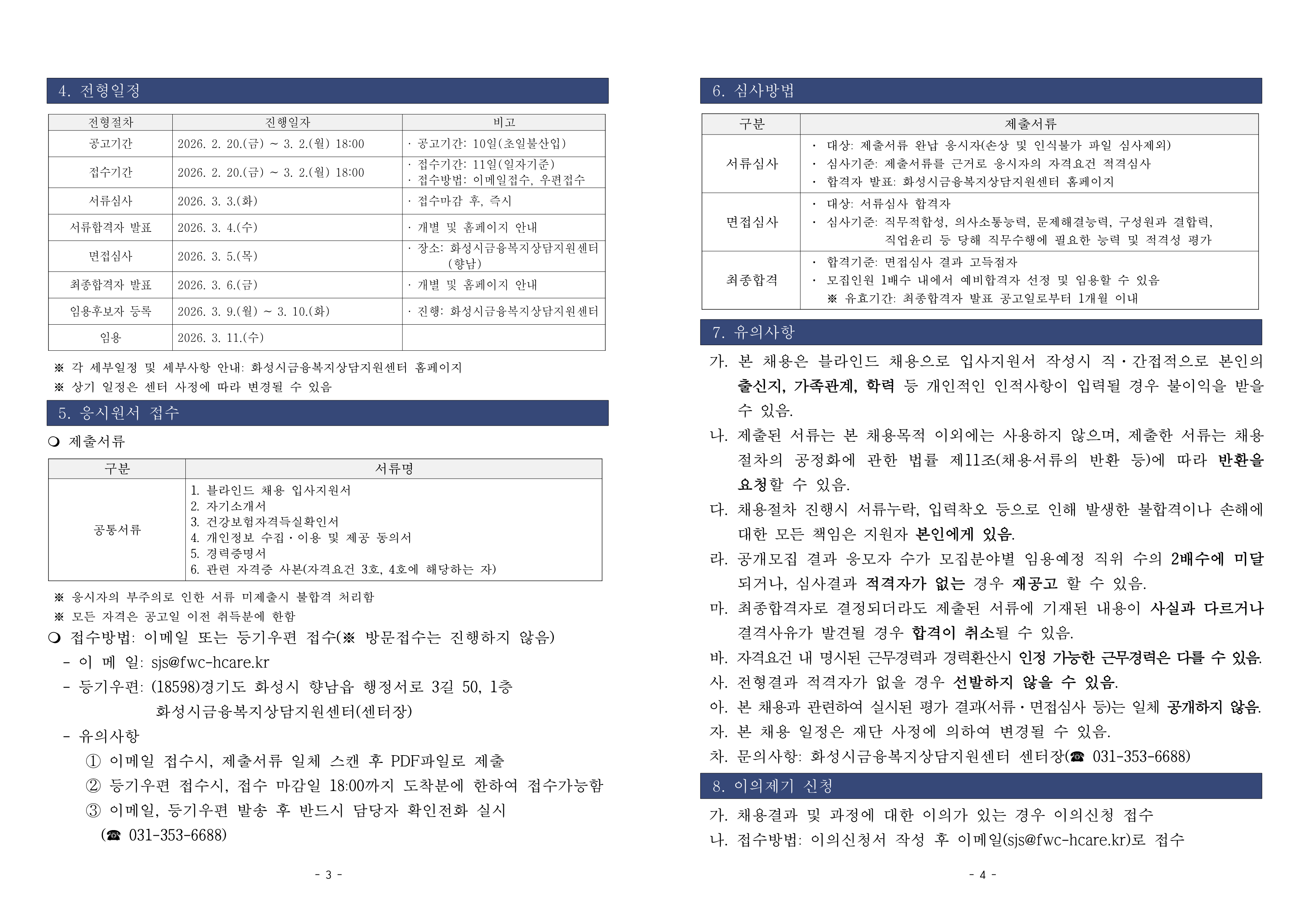 화성시금융복지상담지원센터 2026년 2차 공개채용(블라인드) 공고