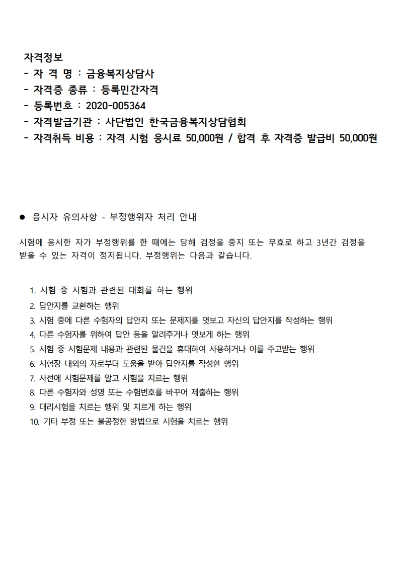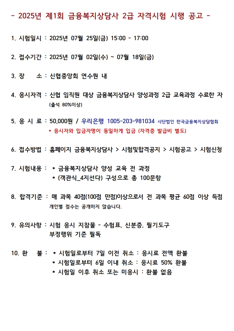 [2025년] 제 1회 신협 임직원 대상 금융복지상담사 양성과정 금융복지상담사 2급 자격시험 시행 공고(대전 신협 연수원-2기 )