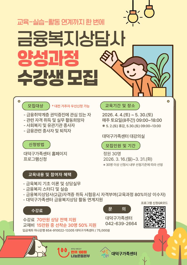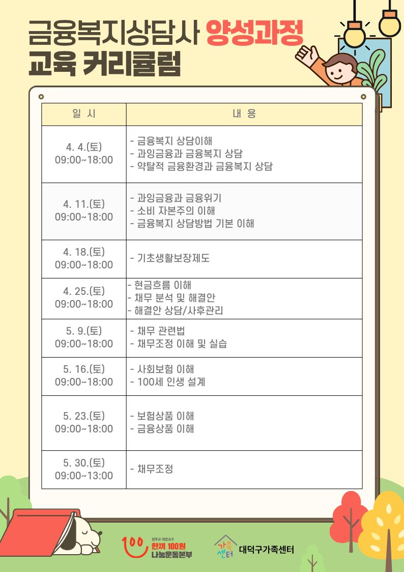 대덕구 가족센터 금융복지상담사 양성과정 수강생모집